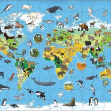- A challenging 150-piece animals of the world puzzle