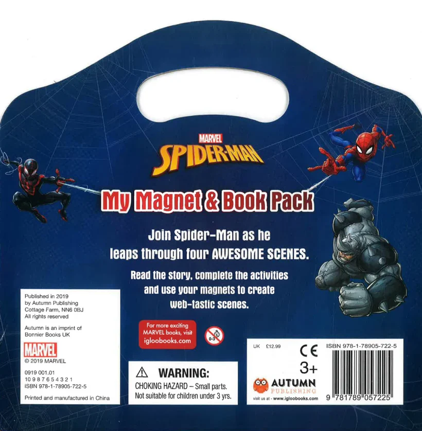 - 🕷 Join Spider-Man as he leaps through four awesome scenes. Read the story, complete the activities and use your magnets to create web-tastic scenes.