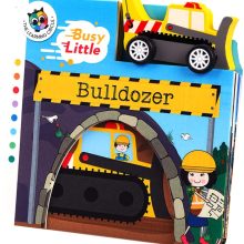 When the wooden vehicle is removed, the accordion-style book unfolds to reveal a landscape where the vehicle can travel through tunnels and under bridges, all while following an exciting story about a busy little bulldozer. The flip side of the book contains descriptions and photographic images of subjects related to the specific vehicle which heightens the learning experience. Busy Little books guarantees smart, playful, and educational fun!