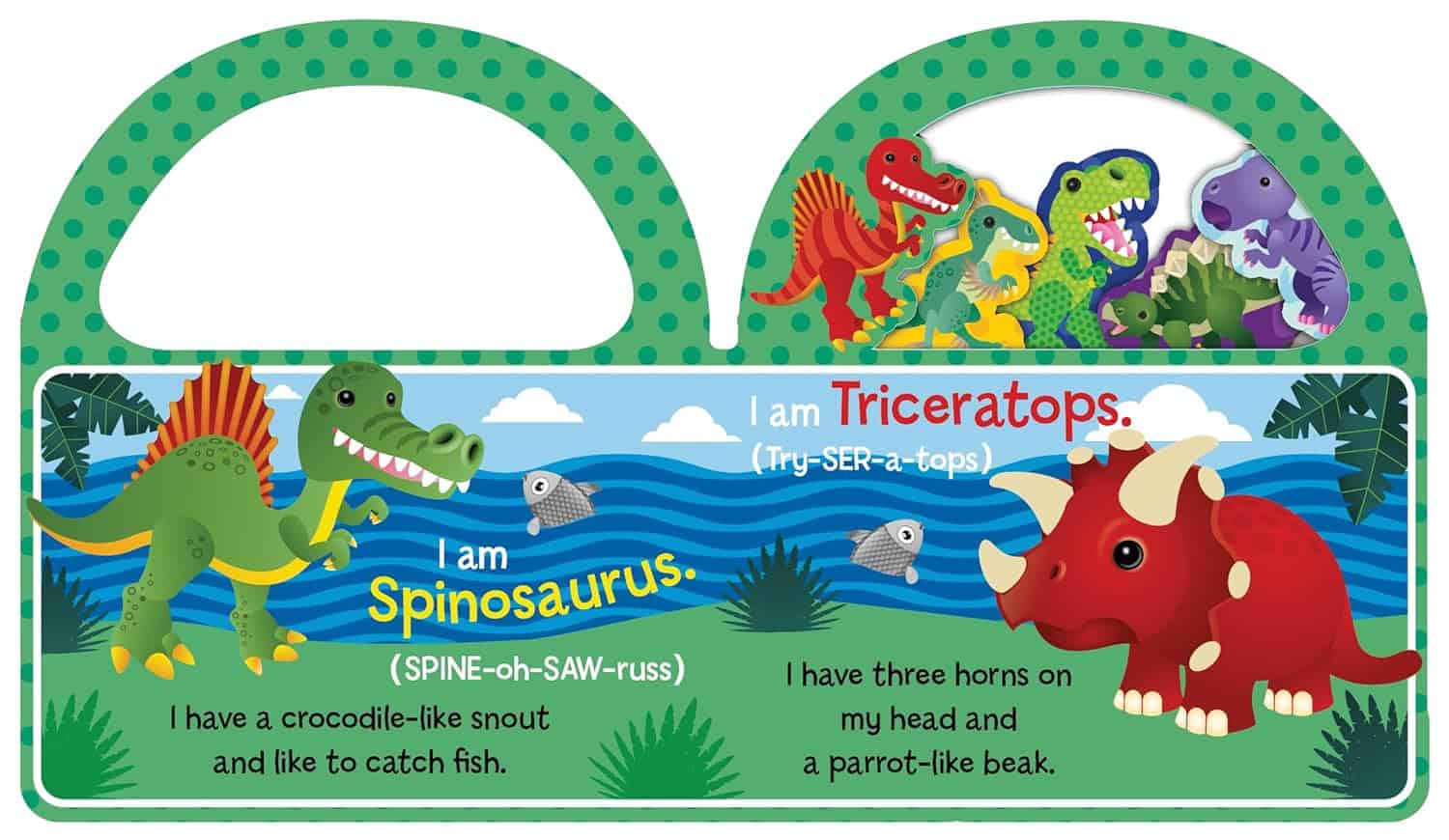 „Carry Along Dinosaurs“ is an exciting board book designed for young dinosaur enthusiasts to take along on their adventures.