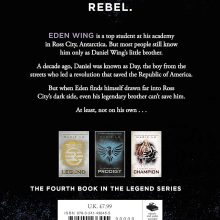 June and Day have sacrificed so much for the people of the Republic – and each other – and now their country is on the brink of a new peaceful existence. June is back in the good graces of the Republic, working within the government’s elite circles while Day has been assigned a high level military position. But when a plague outbreak, deadlier than any other, causes panic in the Colonies, and war threatens the Republic’s border cities, the two are thrown back together. June is the only one who knows the key to her country’s defence. But saving the lives of thousands will mean asking the one she loves to give up everything he has.