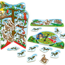 Cheeky Monkeys is a fun game where there’s no hanging around as you battle to collect the most bananas – but watch out for other players trying to steal them! Designed for children aged 4-8, this game of chance encourages children to think strategically and make decisions. On every turn, players must choose whether to play it safe after their first turn or spin the spinner to either collect or risk losing more bananas! The innovative design of the 3D tree and hanging monkeys adds another fun dimension to the game! Designed for 2-4 players, this exciting game is fun and appealing for all the family. In January 2017, Cheeky Monkeys joined the ranks of Orchard Toys’ award-winning games, winning a Best New Toy award at the London Toy Fair in the ‘Games’ category.