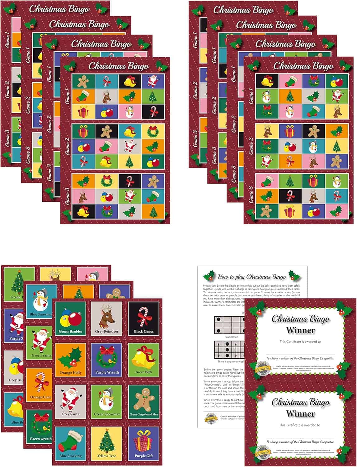 - With winners certificates included in the pack, along with 8 games sheets (which can be used for up-to 24 players), caller’s cards and instructions: providing complete, affordable festive fun & entertainment this Christmas.