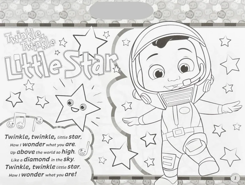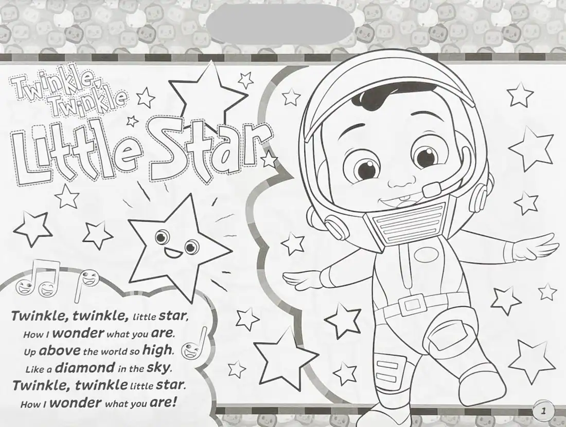 Let JJ and his friends introduce your little one to 11 favourite nursery rhymes and songs! Sing along with your child as they learn the words to Twinkle, Twinkle, Little Star, The Wheels on the Bus, Old MacDonald had a Farm, Baa Baa Black Sheep and more, while they colour in their favourite CoComelon characters.