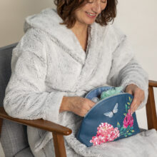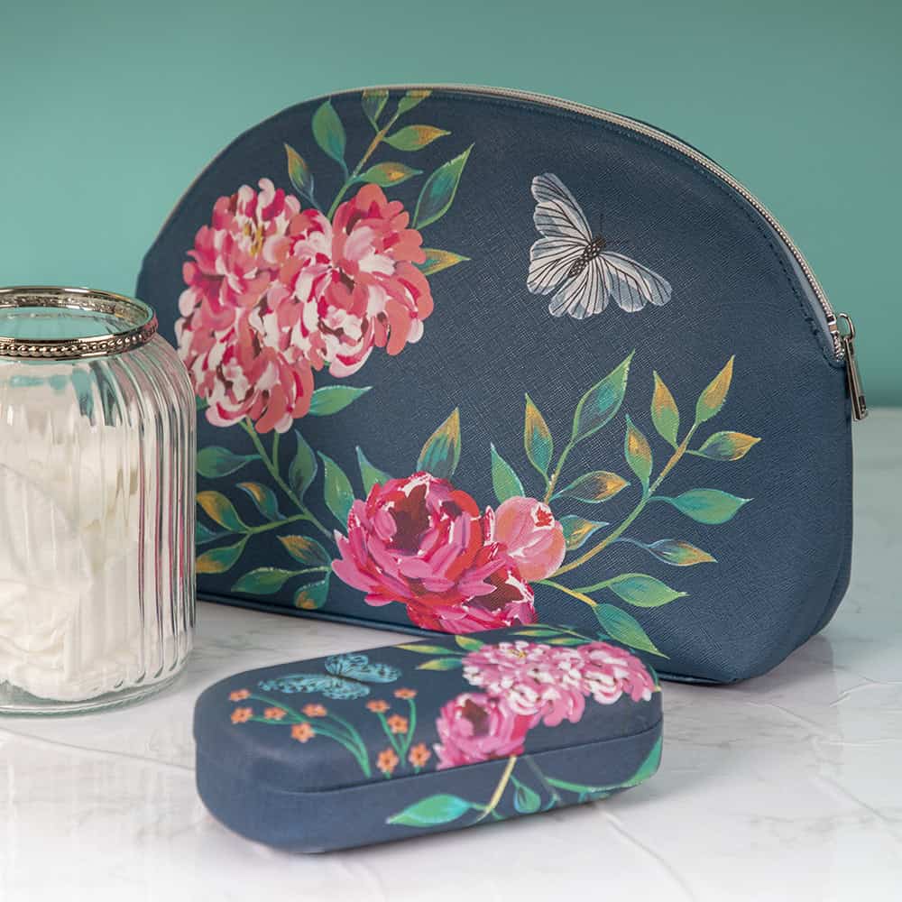 This large, wipeable cosmetic bag is available in several of our beautiful new designs. Making it the perfect gift to fill with holiday toiletries or can be used as a spacious cosmetic bag. Lined with a wipeable fabric, complete with a zipped compartment, this makes the ideal travel accessory.