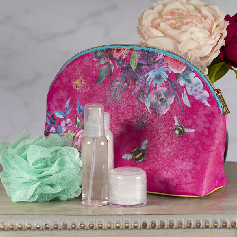 This large, wipeable cosmetic bag is available in several of our beautiful new designs. Making it the perfect gift to fill with holiday toiletries or can be used as a spacious cosmetic bag. Lined with a wipeable fabric, complete with a zipped compartment, this makes the ideal travel accessory.