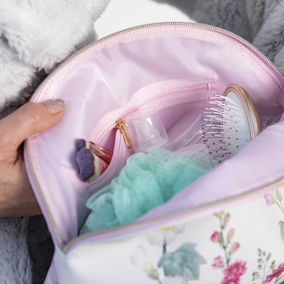 This large, wipeable cosmetic bag is available in several beautiful new designs. Making it the perfect gift to fill with holiday toiletries or can be used as a spacious cosmetic bag. Lined with a wipeable fabric, complete with a zipped compartment, this makes the ideal travel accessory.
