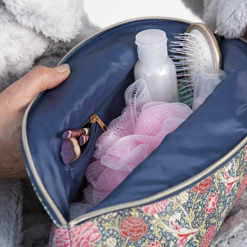 This large, wipeable cosmetic bag is available in several beautiful new designs. Making it the perfect gift to fill with holiday toiletries or can be used as a spacious cosmetic bag. Lined with a wipeable fabric, complete with a zipped compartment, this makes the ideal travel accessory.