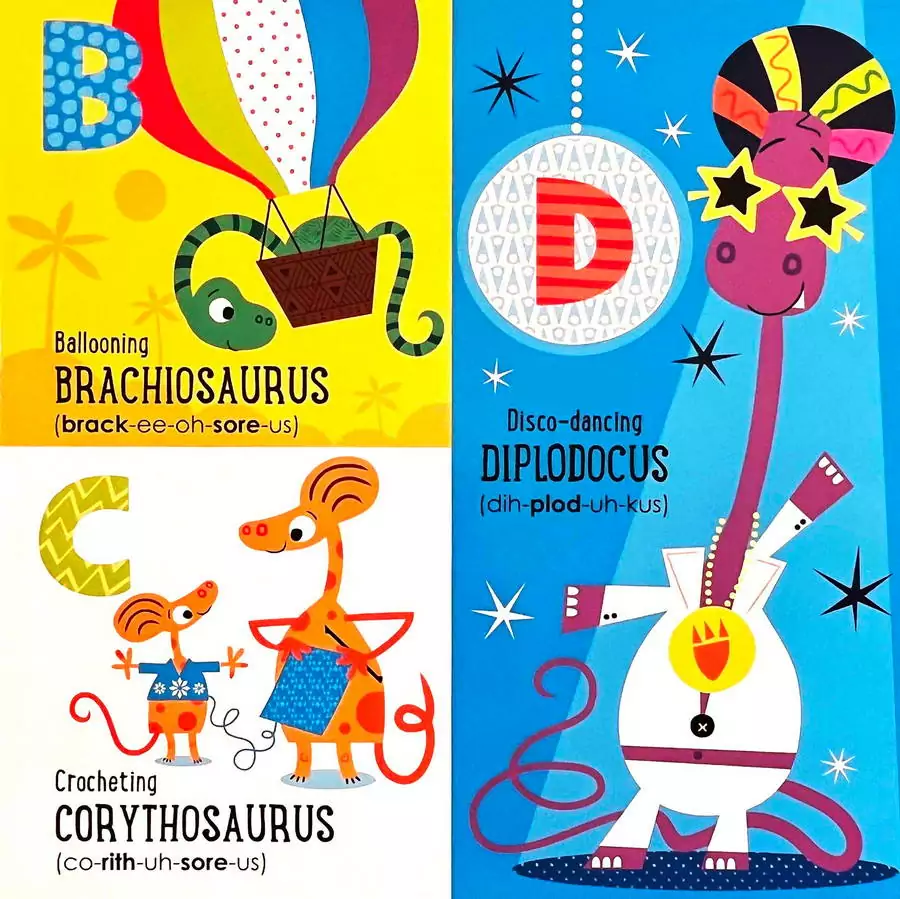 Stuart Lynch’s hilarious dinosaur illustrations guide children through the alphabet in this entertaining ABC book, complete with cut-through cover.