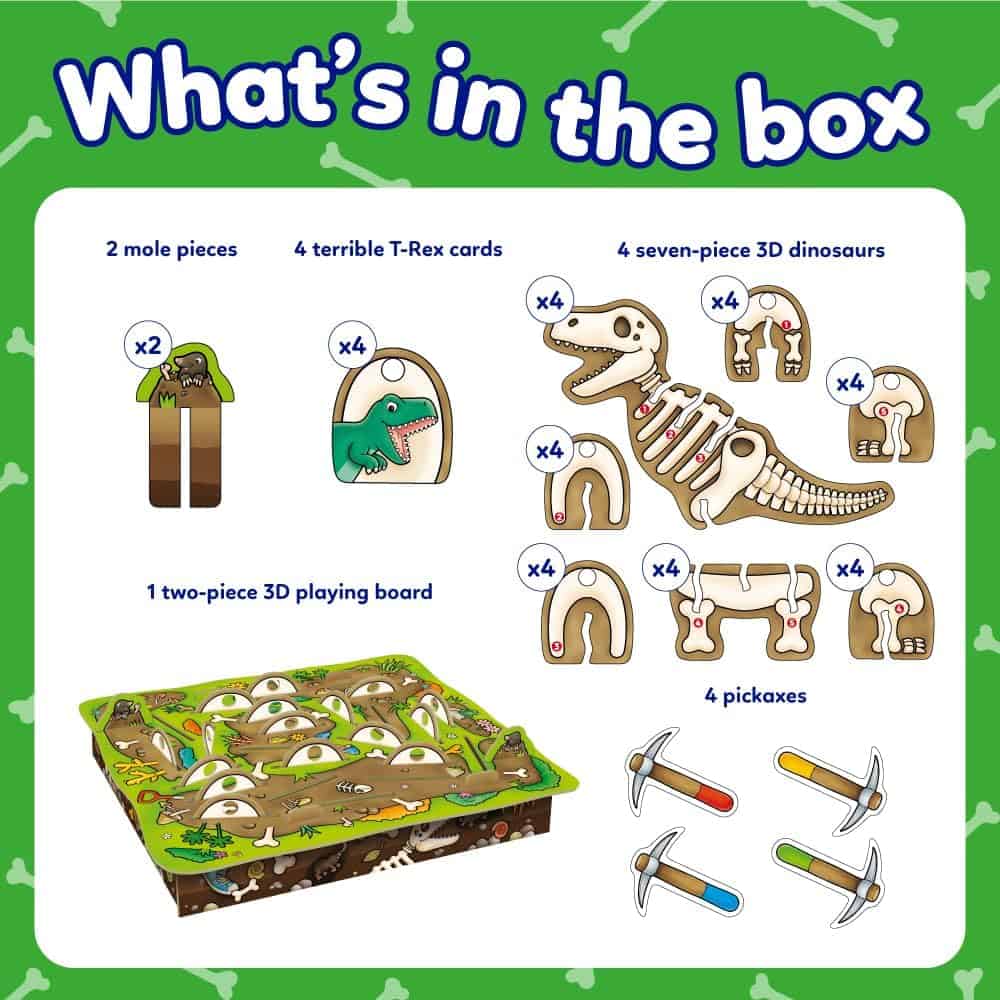 Offers the perfect balance between learning and fun! Players take it in turns to hook a dinosaur bone from the 3D board.