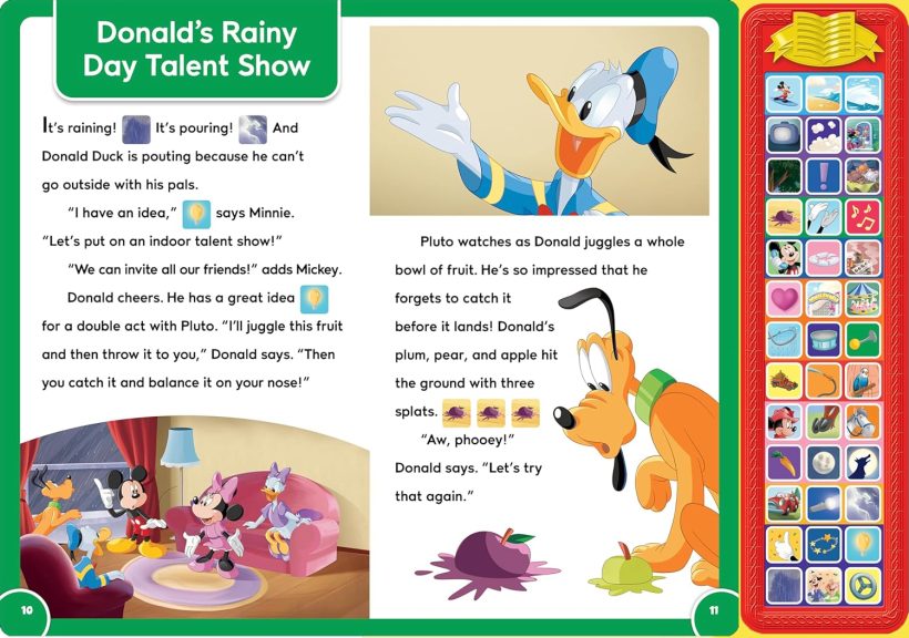 Join Mickey, Minnie, and their pals on eight silly, sweet adventures! While you read, press 39 sound buttons to make the stories come alive with fun sounds and music! Matching words and pictures with sounds develops reading comprehension, and interacting with beloved characters leads the way to a lifelong love of reading.