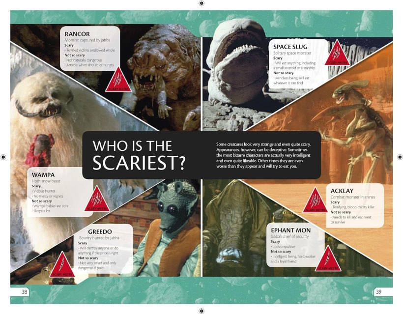 From the huge wamp ice-creature on Hoth to Jabba’s slobbering pet rancor, the galaxy is full of weird and wonderful monsters. Learn about the fast-moving acklay, a fierce predator from Vendaxa, used to terrorize condemned prisoners in the Arena and read all about dianogas, the garbage squids that have seven muscular tentacles. With interactive aspects such as a diary entry from a day in the life of a Genosian picador, a survival guide to protecting a Jedi from a land beast, infographics, and more.