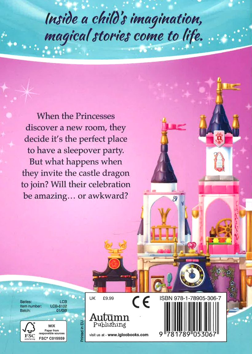 When the Princesses discover a new room, they decide it’s the perfect place to have a sleepover party. But what happens when they invite the castle dragon to join? Will their celebration be amazing… or awkward?