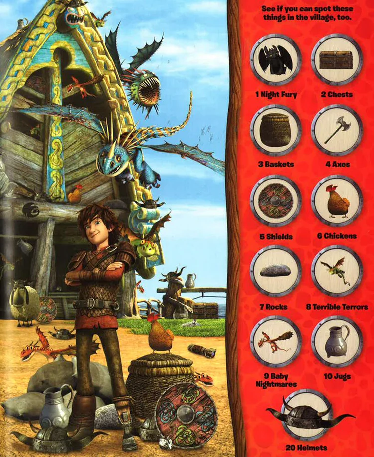 Join Hiccup, Toothless and all their friends in a seek-and-find adventure across the awesome island of Berk.