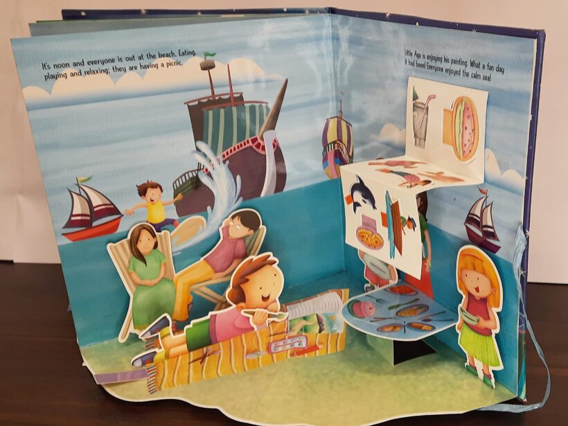 Meet the wonderful creatures in the sea and watch them popping out at you, as you turn the pages of this colorful pop-up book. Read on and be a part of the picnic by the calm sea.