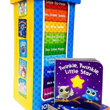 Each book in the set features simple, rhythmic text and vibrant illustrations that bring beloved nursery rhymes to life. The compact size of the mini-board books is perfect for little hands, ensuring durability for repeated readings. The books can be stacked into a fun tower, providing an interactive and playful element to reading time.