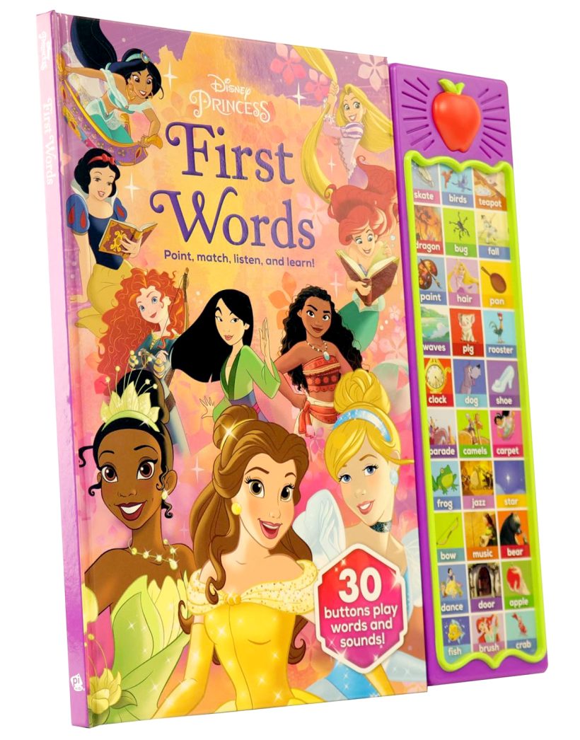 Explore Disney Princess words from your favorite movie moments! 30 sound buttons read the words aloud and play magical sounds. Disney Princesses make learning new words fun!
