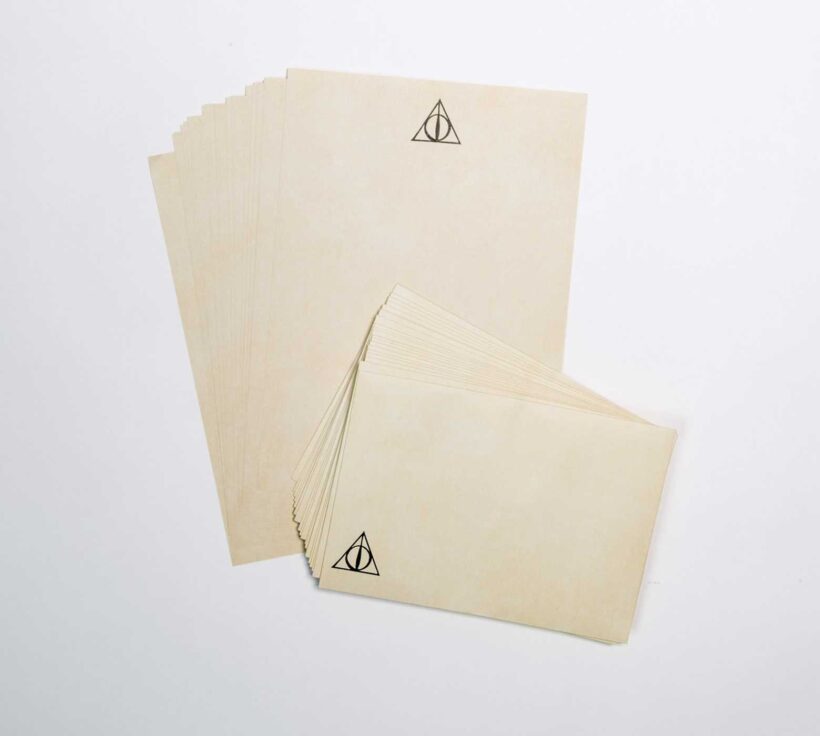 Send your own magical letters with this deluxe Harry Potter-themed Deathly Hallows stationery kit.