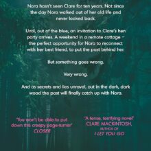 Not since the day Nora walked out of her old life and never looked back. Until, out of the blue, an invitation to Clare’s hen party arrives. A weekend in a remote cottage – the perfect opportunity for Nora to reconnect with her best friend, to put the past behind her.