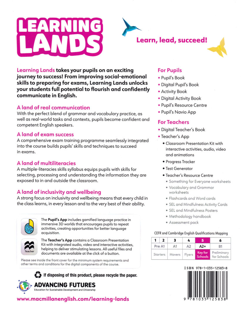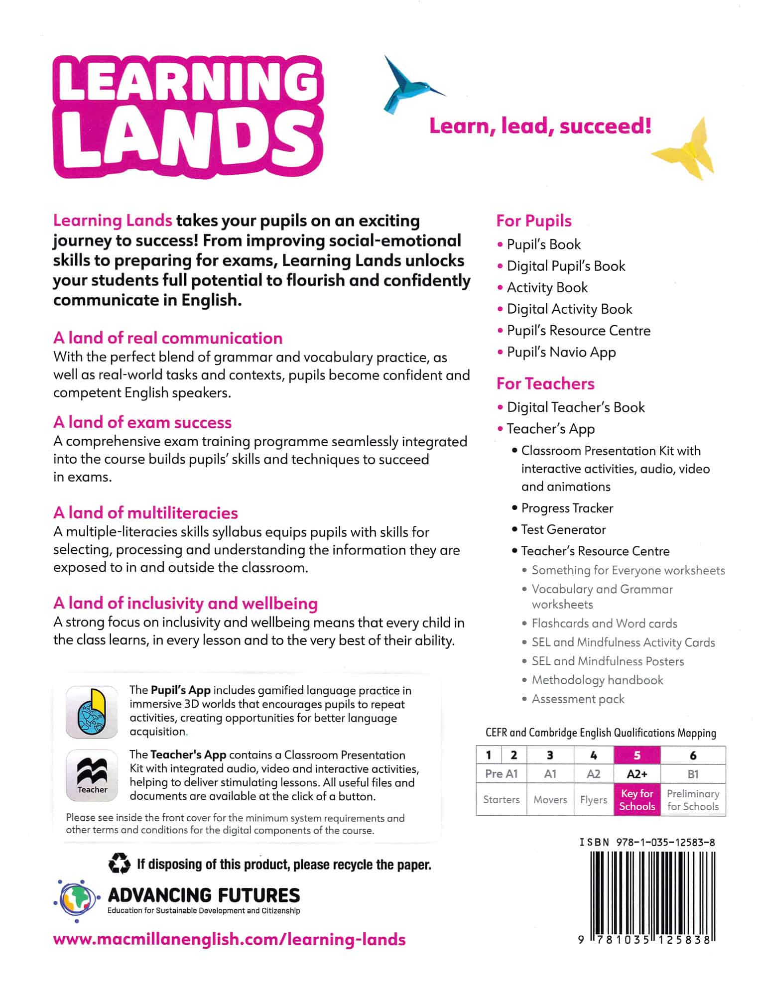 Learning Lands je moderan program za učenje engleskog jezika koji se sastoji od 6 nivoa. Udžbenik je dizajniran tako da pomogne učenicima da samouvereno komuniciraju na engleskom jeziku u različitim kontekstima, a u isto vreme podržava i njihov lični razvoj.