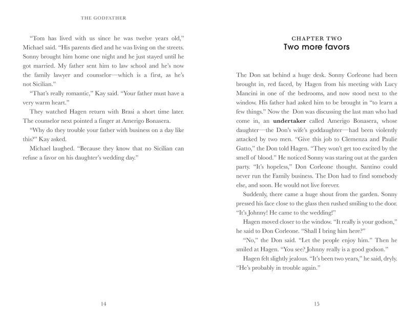 The Godfather, a Level 7 Reader, is B2 in the CEFR framework. The longer text is made up of sentences with up to four clauses, introducing future perfect simple, mixed conditionals, past perfect continuous, mixed conditionals, more complex passive forms and modals for deduction in the past.