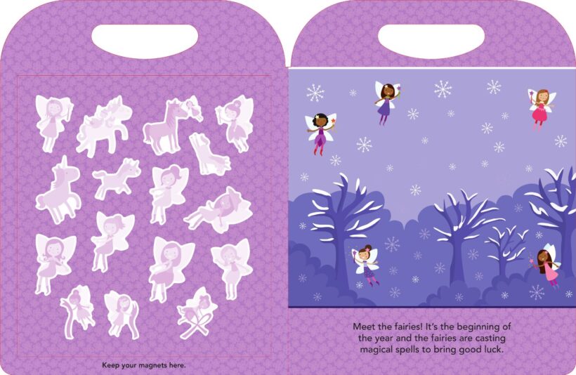It’s time for magnetic fairy fun, so become part of the adventure by finishing the scenes with the shaped magnets inside. Perfect parent-child sharing for children age 3 and up, the simple, immersive text explains what the fairies get up to in spring, summer, autumn and winter. Words and pictures combine in this sturdy board book to hint at which missing magnets to place on the magnetic pages to complete each busy fairy scene. Activity-based fun encouraging shared reading, imaginative play and hand-eye coordination, time and time again.