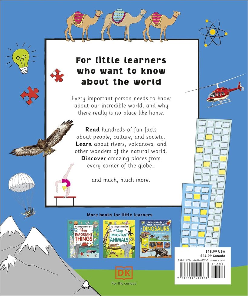 Our world is an amazing place. It’s full of rivers, mountains, animals, and too many other amazing places to count. But that’s not all. There’s also families, friends, music, technology, language, games, and all other things that make lifewonderful. This exciting children’s book is a celebration of our world and what it’s like to live in it. My Very Important World is a vibrant encyclopedia for curious 5-9 year olds, with a unique approach to the subject that features both places from around the globe as well as focusing on what the world is like from a child’s perspective, covering everyday subjects about their own experiences.