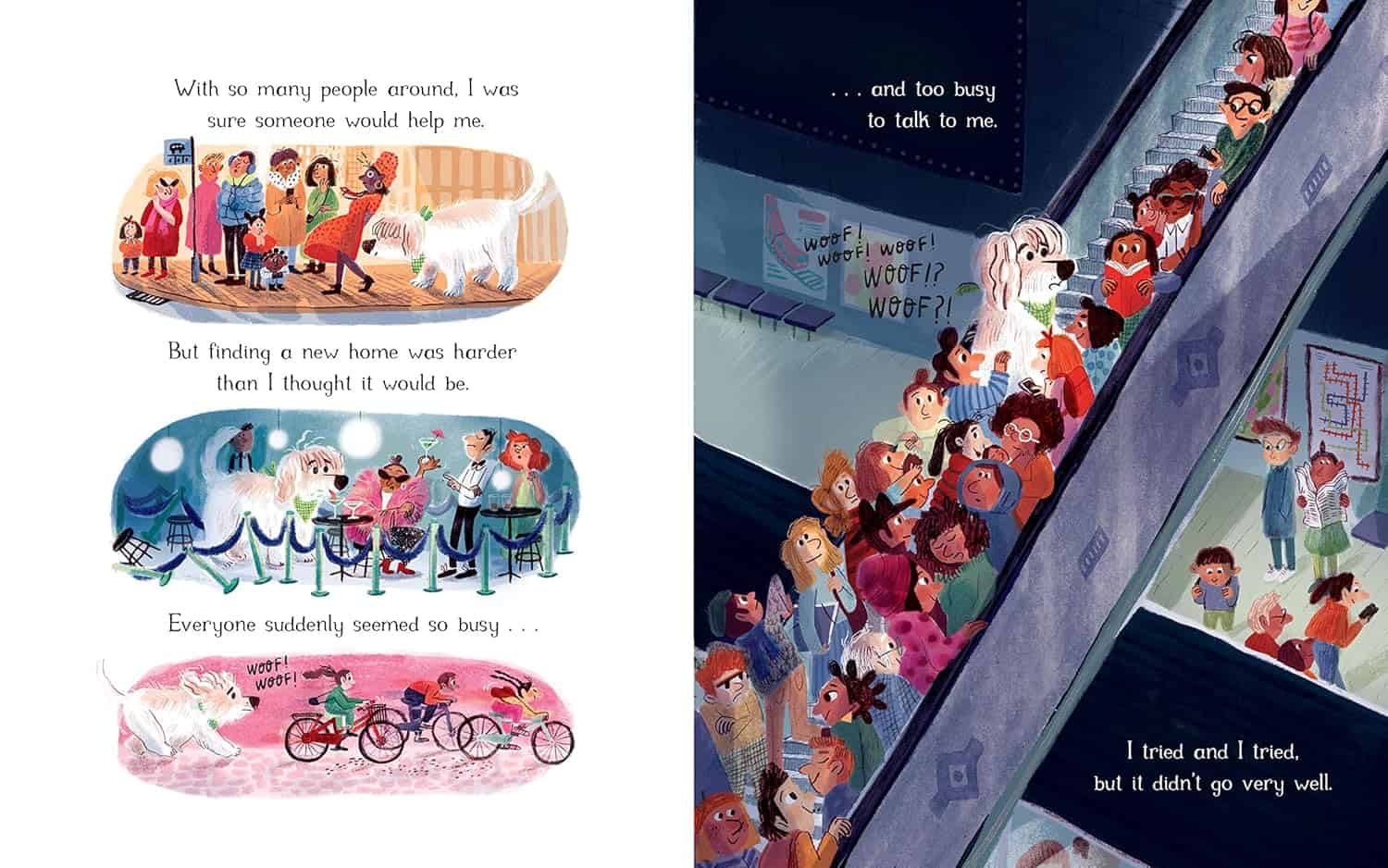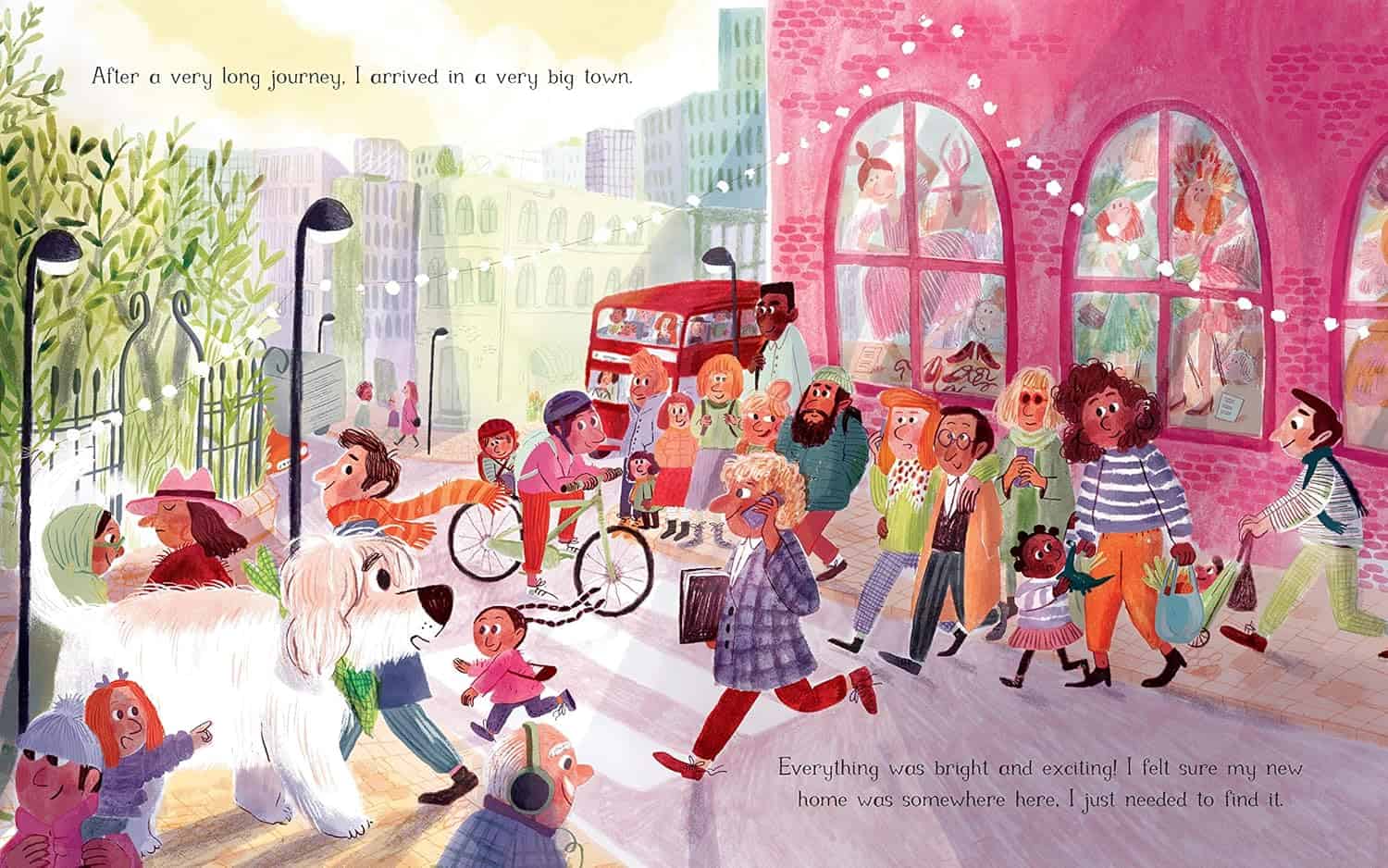 This dog may be alone and without a home, but he’s excited and ready to embrace a new life in a new town – and EVERYONE in it! This town is a busy, vibrant place but sometimes it’s hard being new and feeling different. Who will embrace him back?