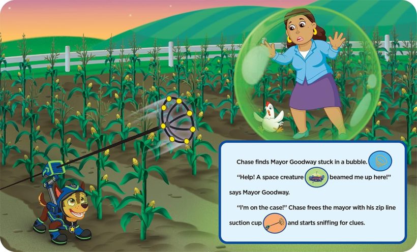 Fly with the PAW Patrol in an out-of-this-world adventure with this book and wristband set! While you read the story, put on your wristband and press the 5 buttons to call the PAW Patrol and help save the day! Plays 5 PAW-some sounds!