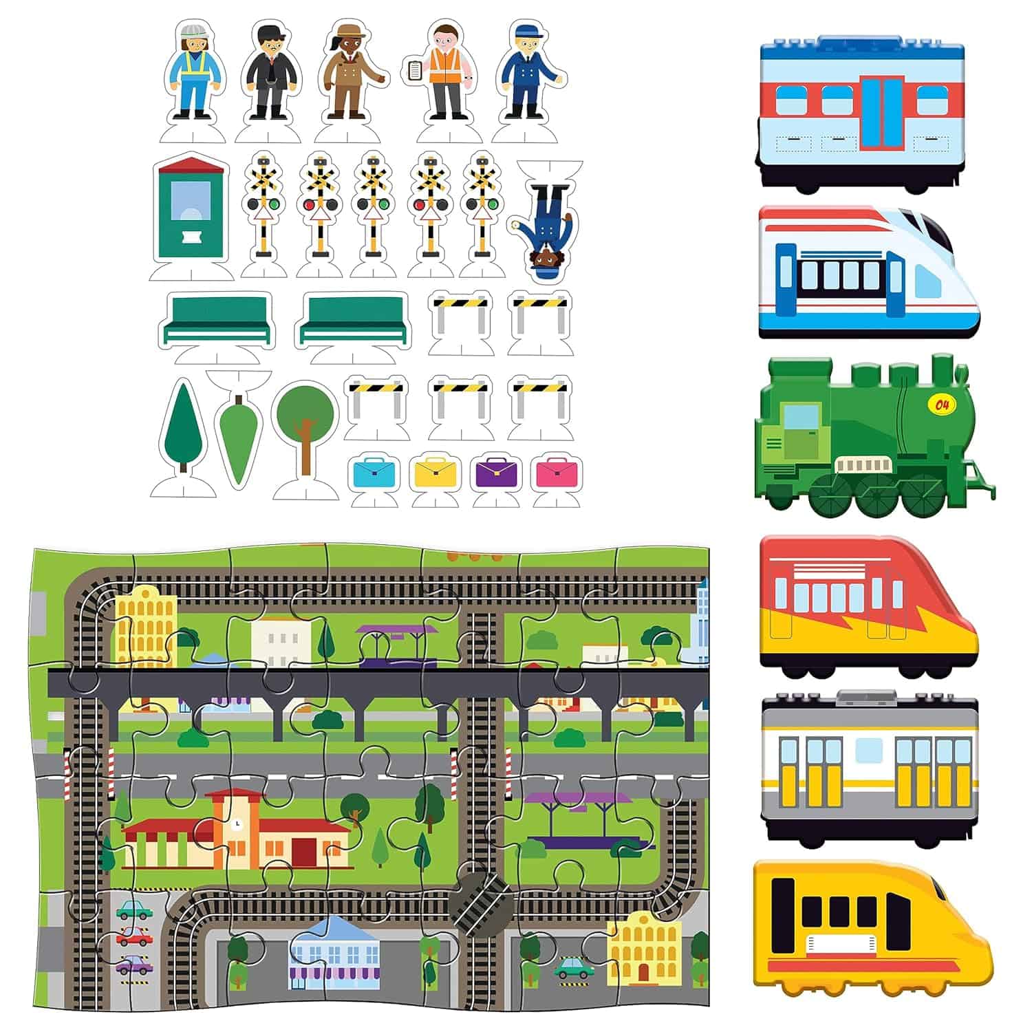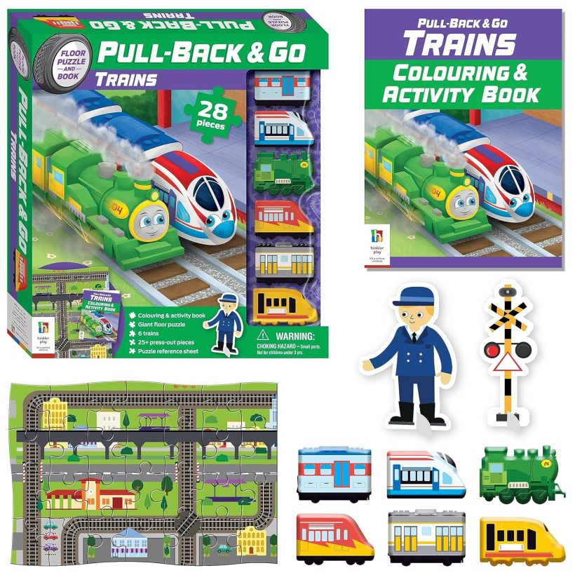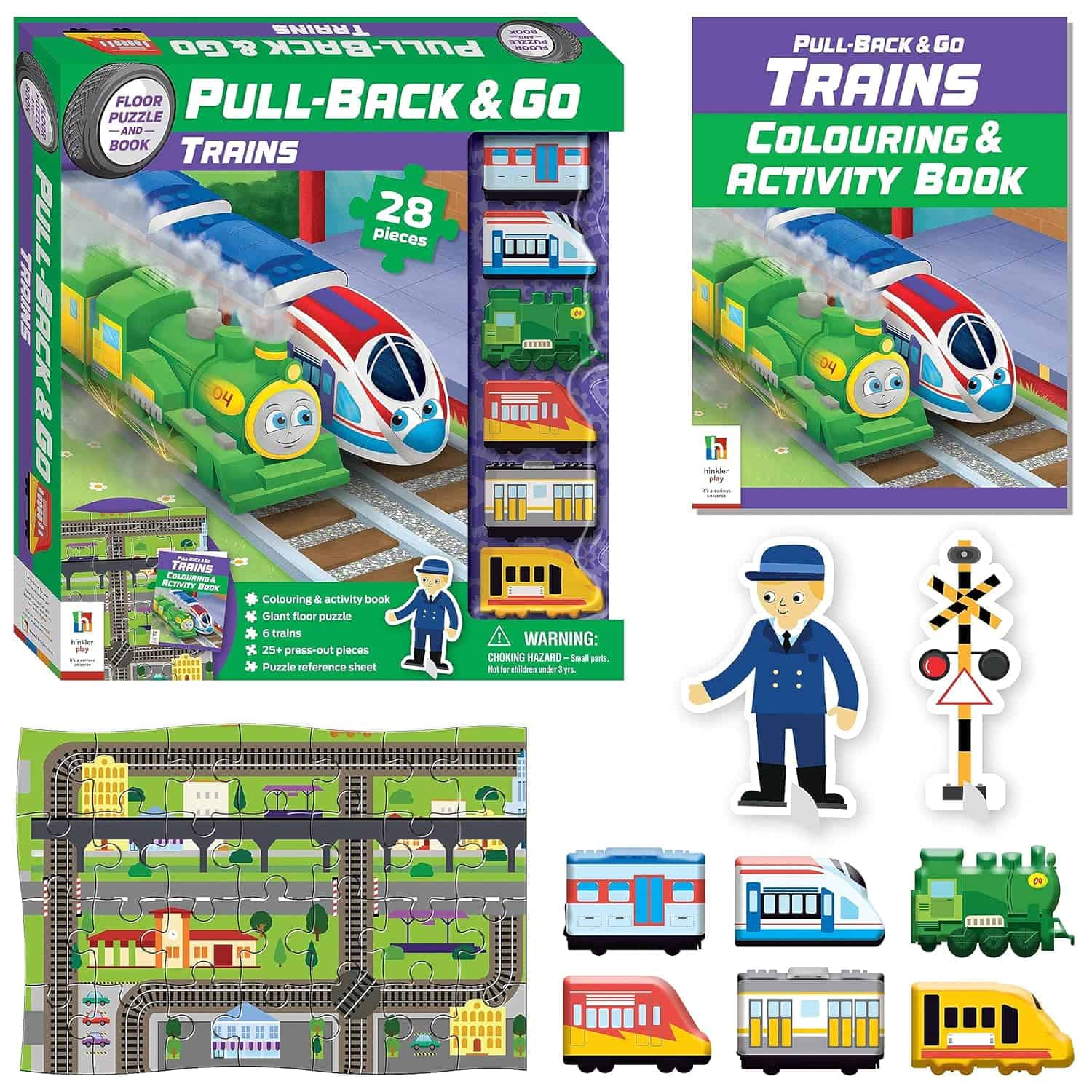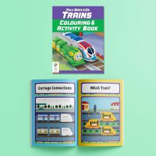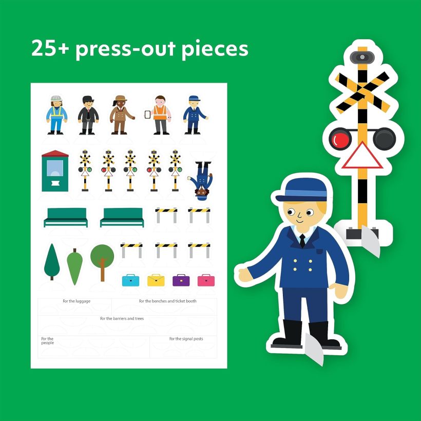 Add to the world with over 25 press-out characters, luggage and train benches that you can place around the station. After the playing has finished, grab the 32-page colouring and activity book and complete the fun train themed activities while reading along with the story!