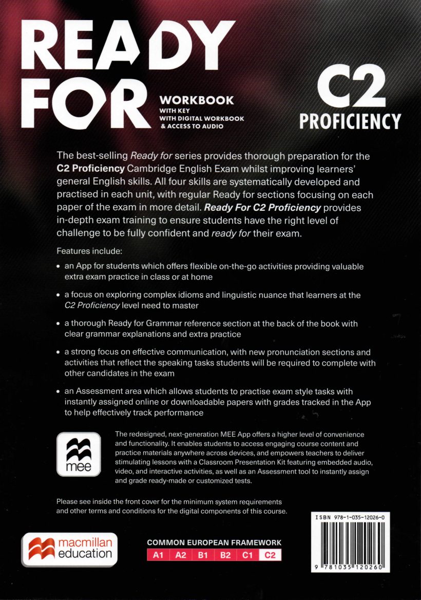 The Ready for C2 Proficiency Workbook provides thorough consolidation and practice of the language studied in the Student’s Book. It also includes access to the Digital Workbook, making it ideal for classroom or online use. This version includes the answer key.