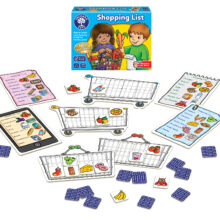 Shopping List lotto game uses quick and simple gameplay which holds children’s attention! Players take it in turns to turn over cards showing everyday items, from tomatoes to washing powder to pizza. If they match the pictures on their shopping list, they are encouraged to say the item out loud and add it to their trolley. Older children can play more strategically by remembering where the cards from their list have been placed. The winner is the first player to collect all the items on their list and fill their trolley or basket!