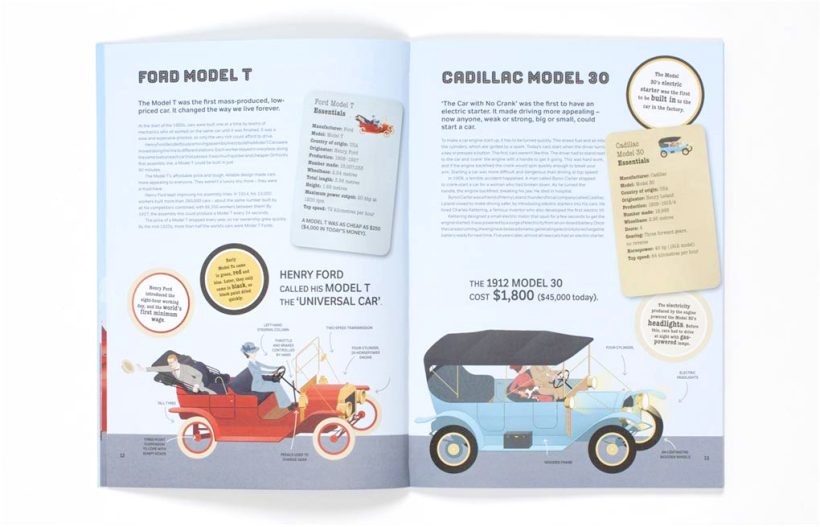 Featuring twenty of the most famous and iconic cars from their invention in the 1880s to today’s modern supercars, each car has its own factfile and press-out model to add to your ultimate car display. With stunning illustrations by Michael Kirkham, this ingenious and eye-catching timeline slots together easily to brighten up any shelf, mantelpiece or school display.