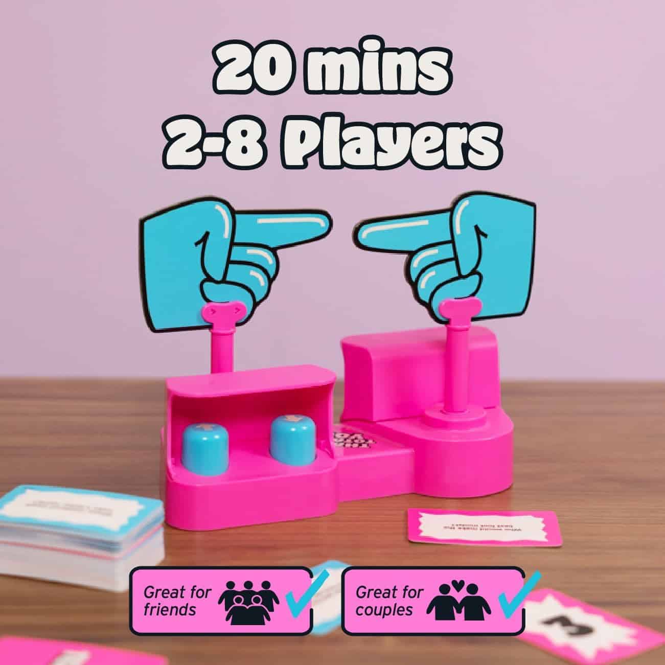 - LET THE FINGERS DECIDE!: The questions are funny and surreal, but never mean. Use the swivel hands to make a decision. Your answer is totally secret, so it’s a hilarious surprise for your opponent.