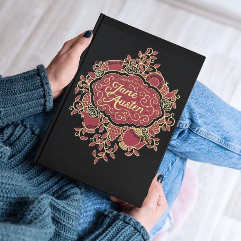 Our Library Collection hardback series has been completely redesigned, for launch in November 2024. The books are now finished in black, soft-touch linen, cloth bound with metallic gold and matt coloured foil blocking. They come complete with co-ordinated head and tail bands, a silk ribbon marker and coloured spray edges. The pages are sewn, and the end papers are in two colours featuring an exclusive design by Holly Dunn.