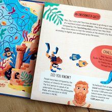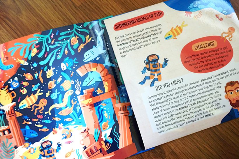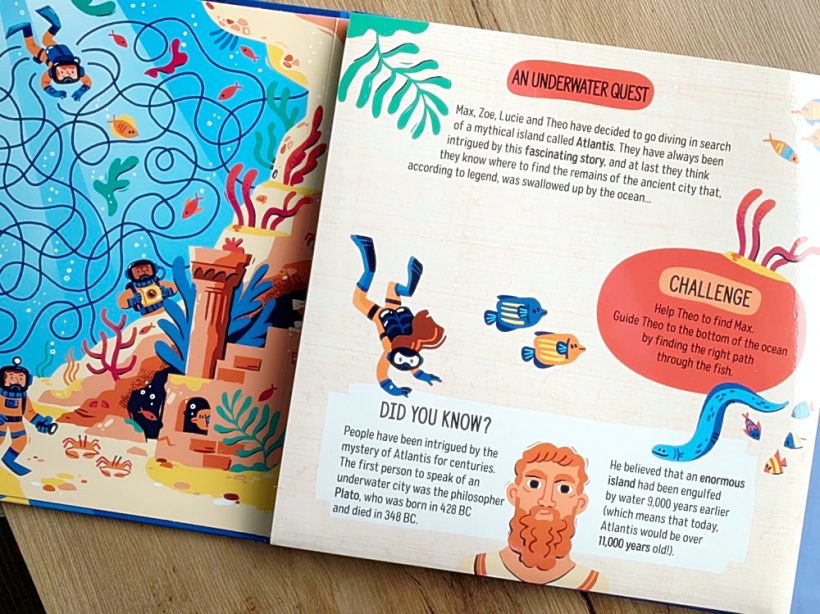 Join 4 divers as they explore the depths of the ocean in search of the missing treasure of Atlantis! On each page, readers must solve a puzzle to progress to the next stage.