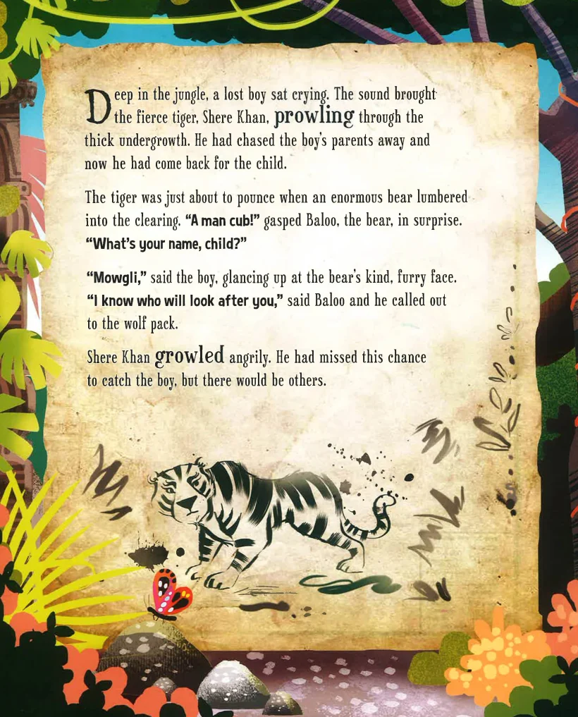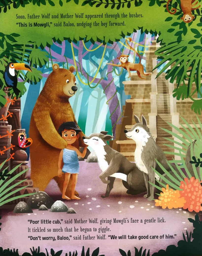 Join Mowgli as he grows from a lost boy to learning the ways of the jungle. Meet the friends that help him, from Baloo the bear, to Bagheera the panther and even some friendly wolves. But watch out, Shere Khan, the tiger, is never far away. With sparkly pages full of glitter, this enchanting story will capture every child`s imagination.