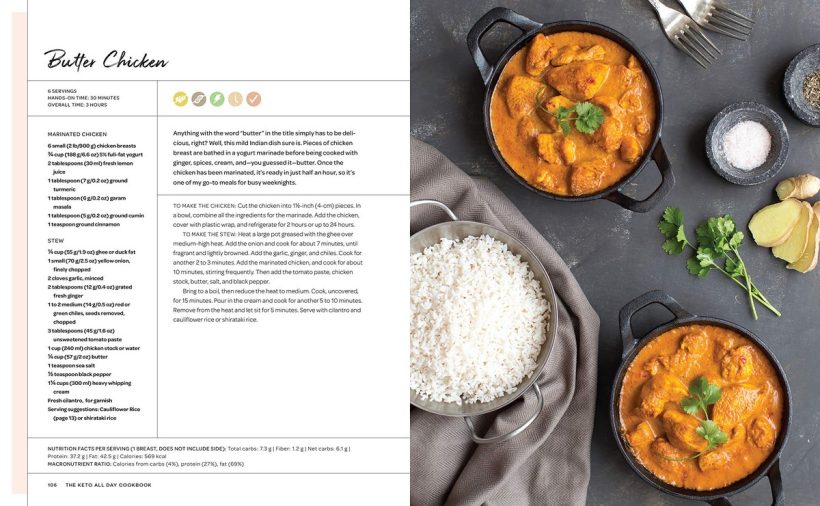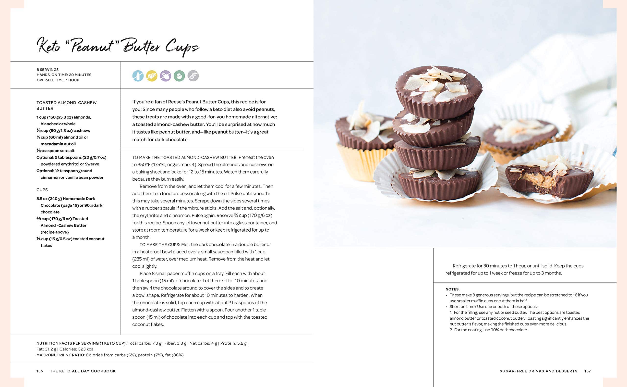 Enjoy tasty, flavorful recipes for snacks and meals, such Breakfast Egg Muffins, Pizza Waffles, Carrot Cake Oatmeal, Southern Duck Deviled Eggs, Eggplant Parma Ham Rolls, and Taco Frittata. Keto All Day even has recipes for delicious drinks and desserts, including Cookie Dough Mousse, Boston Cream Pie, and Raspberry Lime Electrolyte Cooler.