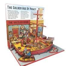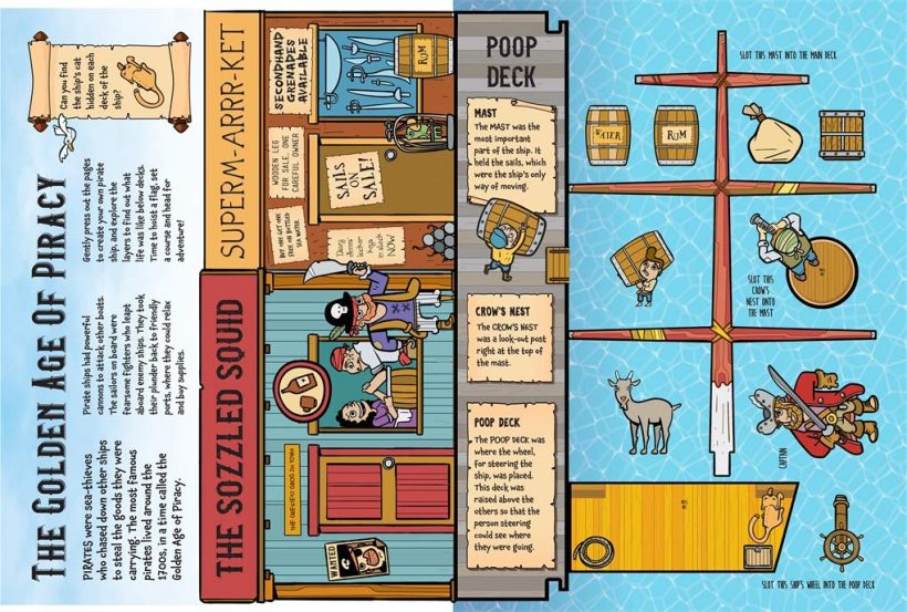 Inside this book lurks a terror of the seven seas! Press out the cleverly shaped, chunky pages to reveal the decks of a pirate ship! Explore your very own vessel, from keel to crow’s nest, and discover astonishing facts about the pirating life. Complete with press-out cannons, mast and scoundrel crew, it’s a book, 3D model and play scene all rolled into one.