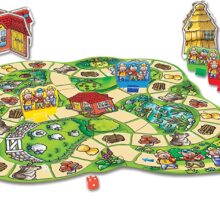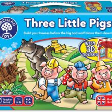Most will know the popular story of the three little pigs, all trying to build their houses before the big bad wolf huffs and puffs and blows them down! This is a fun and simple board game, where players roll the dice to try and land on a pile of straw, sticks or bricks to start building their houses. But…they must watch out for someone landing on a wolf square. If this happens, the player spins the spinner, giving the wolf the chance to blow down another player’s house! Once someone has completed all three of their houses, they have to try to get to the centre of the playing board before the sneaky wolf starts huffing and puffing again! This game of chance is really exciting, as players have to watch out for the wolf right up to the last minute.