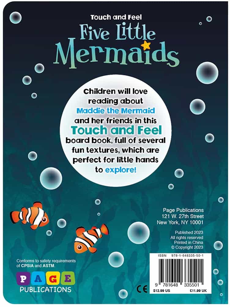 „Five Little Mermaids Touch and Feel“ is an enchanting children’s board book that combines a delightful story with interactive tactile elements.