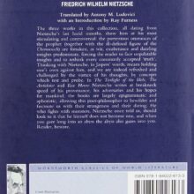 The three works in this collection, all dating from Nietzsche’s last lucid months, show him at his most stimulating and controversial: the portentous utterances of the prophet (together with the ill-defined figure of the Übermensch) are forsaken, as wit, exuberance and dazzling insights predominate, forcing the reader to face unpalatable insights and to rethink every commonly accepted ‘truth’. Thinking with Nietzsche, in Jaspers’ words, means holding one’s own against him, and we are indeed refreshed and challenged by the vortex of his thoughts, by concepts which test and probe.