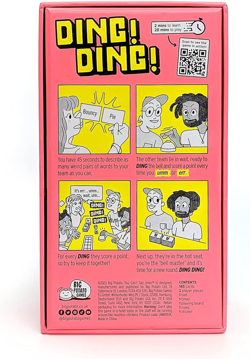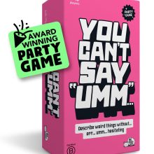 You’re not just avoiding “umm”… this is a card game for adults and families that has loads of new challenges, like ‘change seats for every right answer’ and ‘do everything in a high-pitched voice’.
